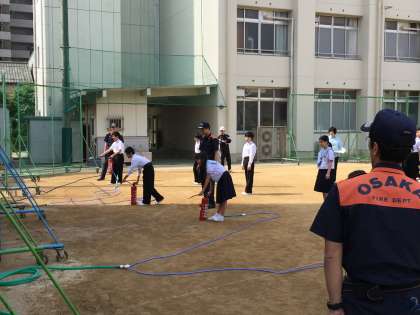 5月14日に土曜授業として、大阪市福島消防署より消防士