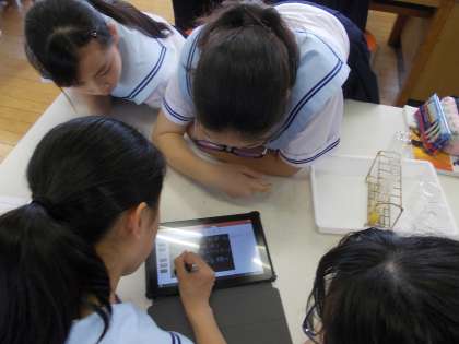 います。今回の授業は、実験の結果をタブレットに記入した