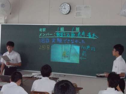 2年生の理科の授業で、生徒たちがグループごとに配布され