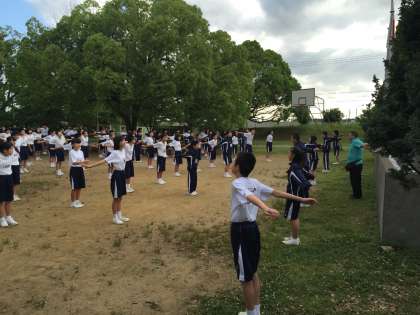 7時のラジオ体操もみんな元気よく体を動かしています。
