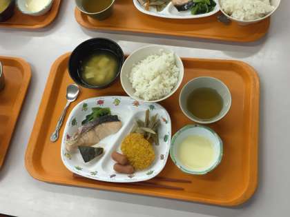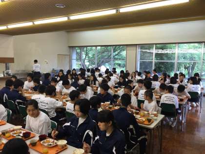 朝食の準備を係がおこなって、いただきます!