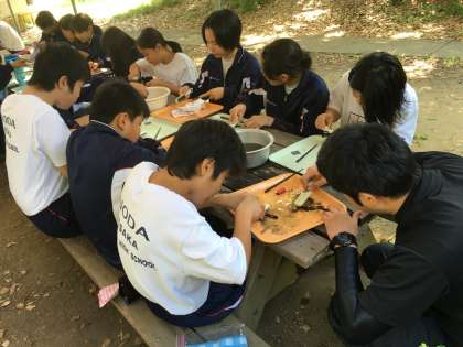箸磨きに没頭しています。完成したお箸は、どんな模様になったかな?