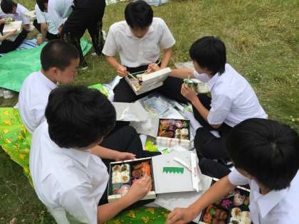 お弁当を広げる様子です。
