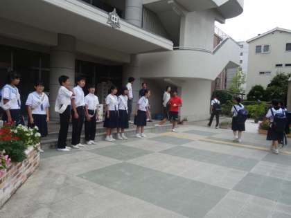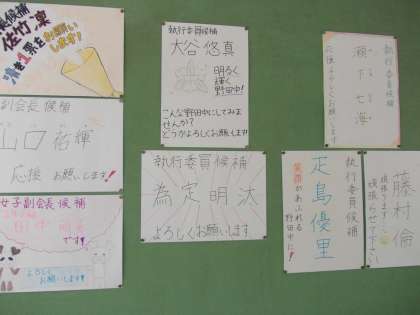 28〜29年度生徒会役員立候補者が、朝の登校時に