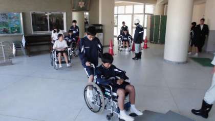 1年生の訓練プログラムである、車イス搬送、高齢者疑似