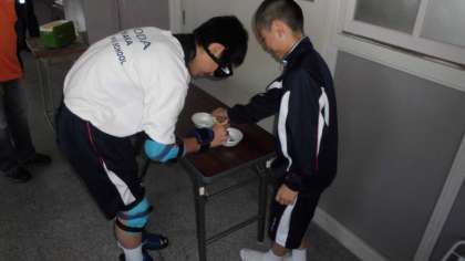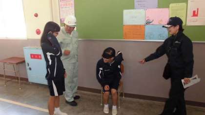 体験・訓練とアイマスク体験を通して、「共助」の精神