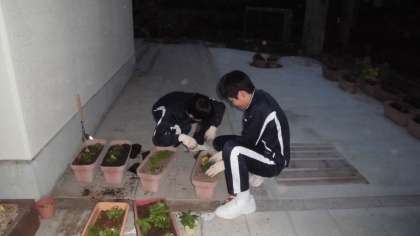 新しい生徒会役員7名が、管理作業員の薮田さ