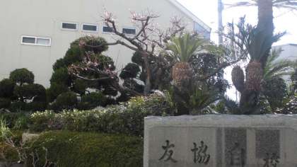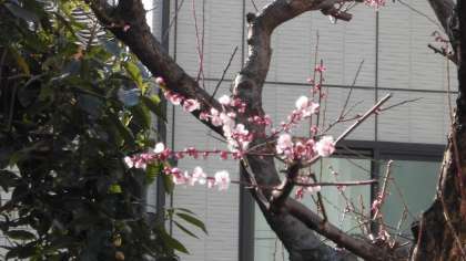 校門を入って右手の梅の木が、蕾を開かせつつ