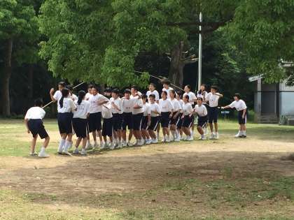 昼食後のレクリエーションです。大縄やアスレチックを楽しみました。この後、青少年の家に移動して入所式です。