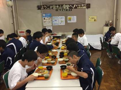 各部屋に入室し、入浴を終えた後、夕食をいただきました。準備や片づけもみんなで協力してスムーズにできました。この後、学級対抗での「ノダリンピック」でクラスの団結を競います。最初の学級対抗行事で、栄冠に輝くのはどのクラスでしょうか。