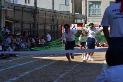 アスレチック走は、いわゆる障害物競争で梯子くぐり、跳び箱、