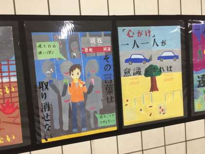 2年生が美術科の授業で取り組んだポスター30作品が、JR海老江駅