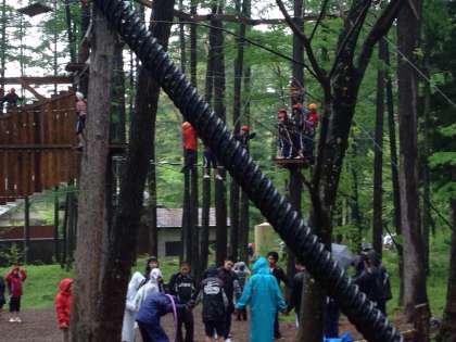 雨が少し強くなってきました。3組がハイエレメントの活動を終わり次第EXアドベンチャーの活動は終了します。