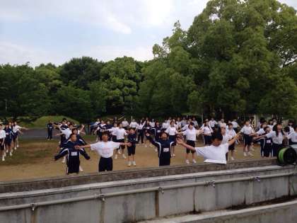 ラジオ体操をします。
