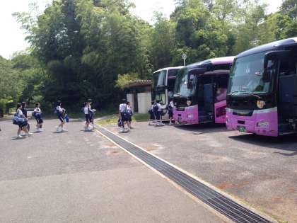 退所式も終わり、少し早目ですが、バスに乗り込んで自然の家を出発します。