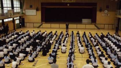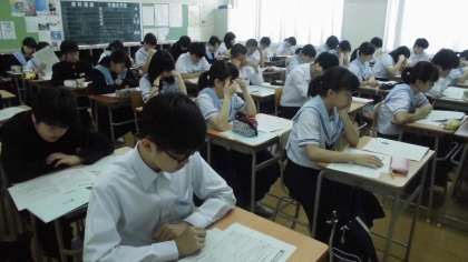 この日は「いじめについて考える日」にあたり、校長先生のお話に続き、生徒会長の疋島さんより、いじめ撲滅宣言が提言されました。以下は、その一部です。