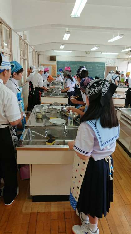 6月5日(火)1年3組で家庭科の授業で調理実習をしました。中学校での初めての調理実習でチョコチップクッキーを作りました。各班とまどいながら時間は少しかかりましたが、皆大成功でした。