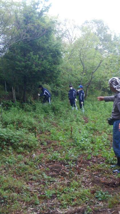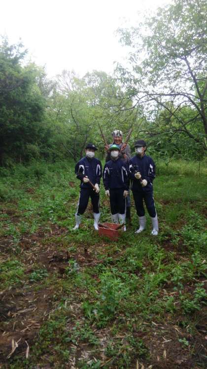 サツマイモの苗を植えたり、タケノコを収穫したりしました。