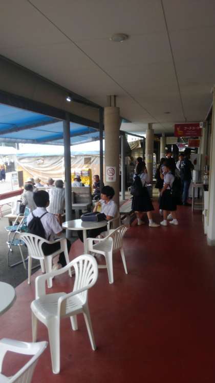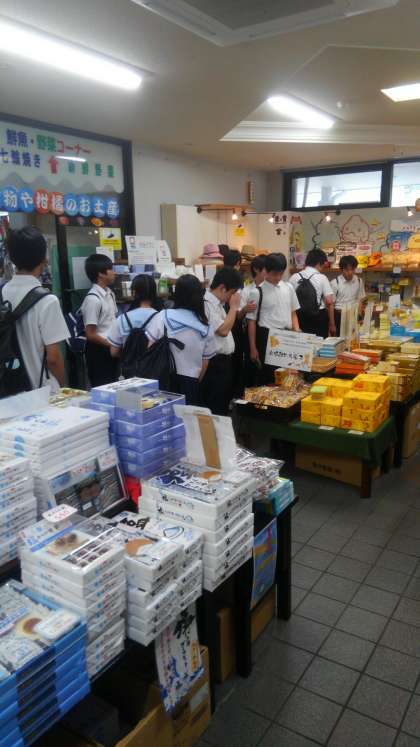 ソフトクリームを食べたり、ジュースを飲んだりしている生徒もいます。