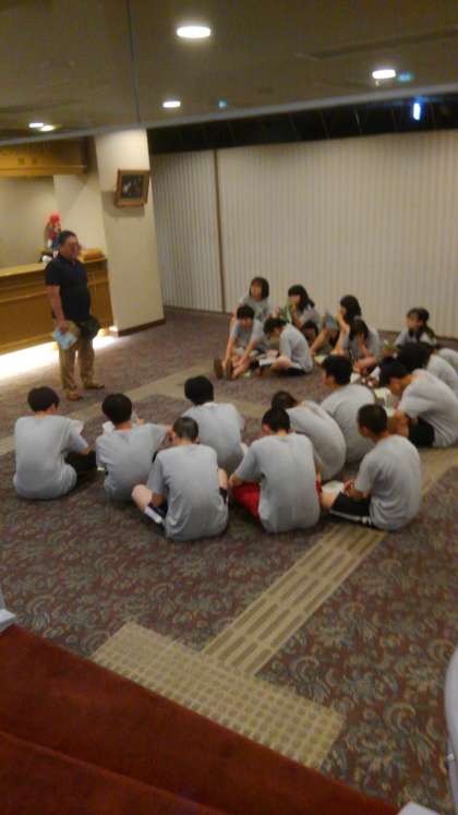 スタンツ大会が終わって、就寝準備と並行して室長が集まり、会議をしています。