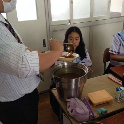 生徒の反応は、レトルトカレーよりも辛くなく温かいので全体的には好評で、もっと食べたいと言う生徒が多くいました。
