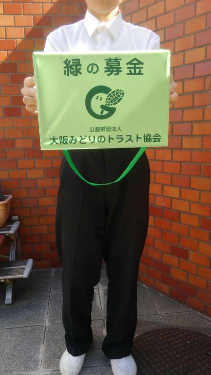 校内だけでなく、緑化推進の啓発活動です。募金活動は、15日(金)まで行います。