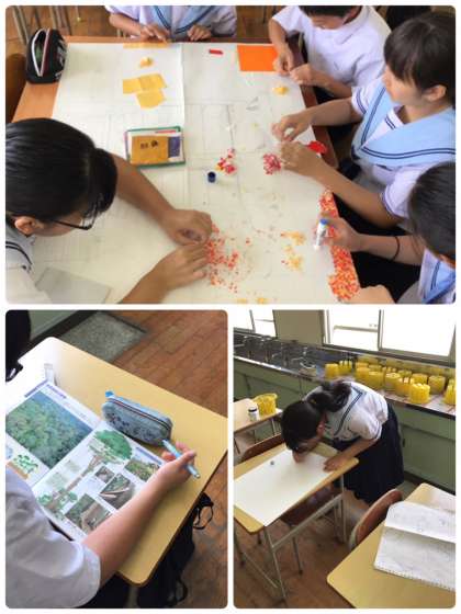 一方で、1年生は文化発表会で展示する貼り絵をみんなで制作していました。