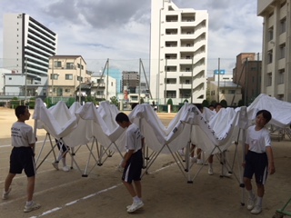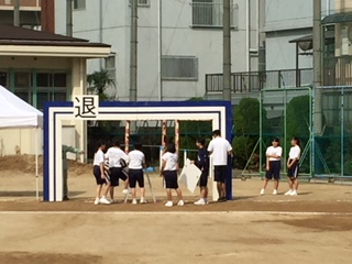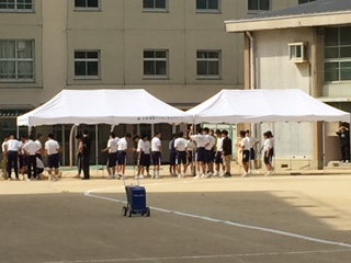 13時15分から体育大会の準備が始まりました。朝まで降り続いた雨が心配されましたが、1時限目からグラウンドの整備を行ったことで、スタートすることができました。