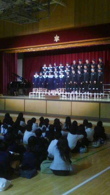 3年生は、金曜日の本番に向けて随分仕上がっています。小学生は、どんな感想を持ってくれたでしょうか。憧れや自分たちも、中学校で合唱をしたいと思ってくれていたら、嬉しいです。