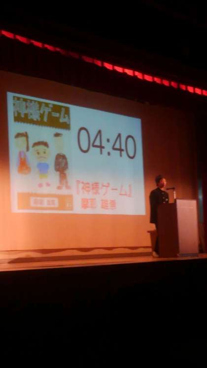 5分ぴったりで、「神様ゲーム」という本を紹介し、歓声があがりました。