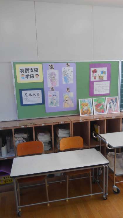 特別支援学級の作品展示です。