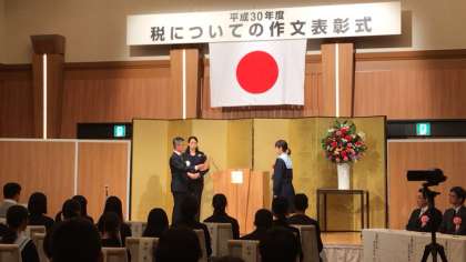 平成30年11月15日、ホテル阪神にて「平成30年度 中学生の税についての作文」の表彰式が行われました。