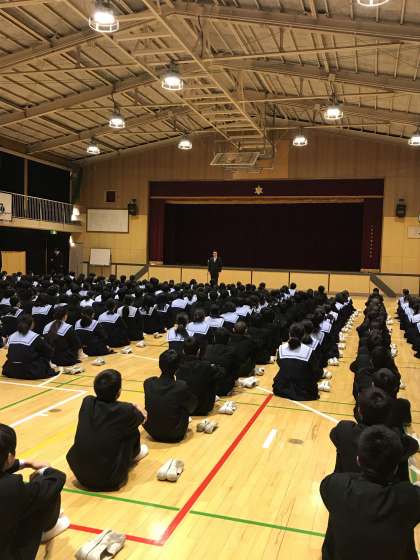 生徒指導主事の道越先生から冬休みの過ごし方についての講話があり、