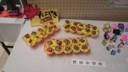 昨日から作品展の展示が始まりました。野田中学校の特別支援学級からも絵やクリスマスツリー、ブレスレット、たこ焼きなどの作品を展示しました。