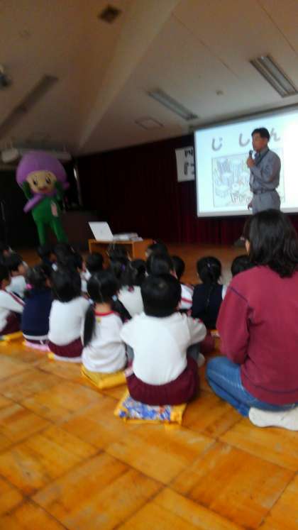 前半は、福島区のゆるキャラ、フッピィが登場し、西野田幼稚園の園児さんが地震が起こった時には、どのようにするかを楽しく教えてもらっていました。後半は、保護者や先生方が災害への備えを学びました。自助、共助、公助から自助、共助、近所の教えを学習しました。