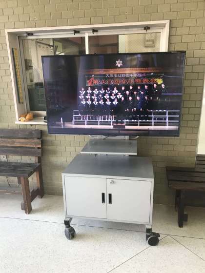 各ホールに管理作業員の薮田さんがTVを設置してくださいます。