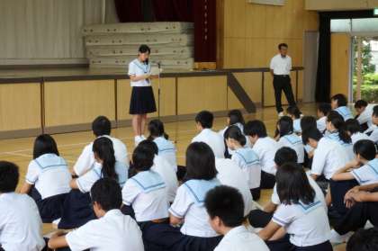 生徒会代表の粟野涼夏さんの各学年取り組みの総まとめの発表もありました。