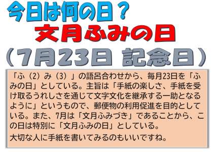 7月23日、今日はふみの日です。メールが日常のなか、時には心のこもった直筆の手紙を書いてみてはどうでしょうか。