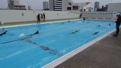 体育では水泳を行っています。まだまだ暑い日が続いているので、子どもたちも気持ちよさそうです。