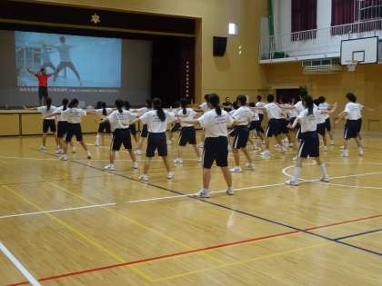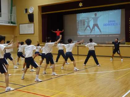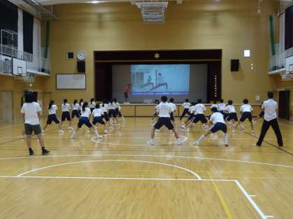 3年生の体育では、体育大会に向けて、「ソーラン節」の練習が始まっています。
