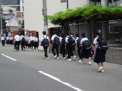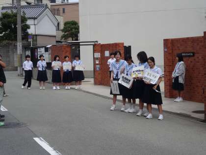 おはようございます。今朝の登校の様子です。後期生徒会立候補者も挨拶運動に参加しています。