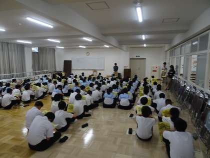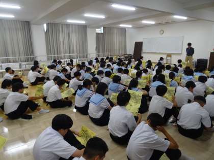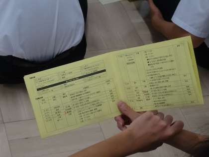 明日の万博訪問に向けて、しおりをもとに前日の最終確認をおこなっています。