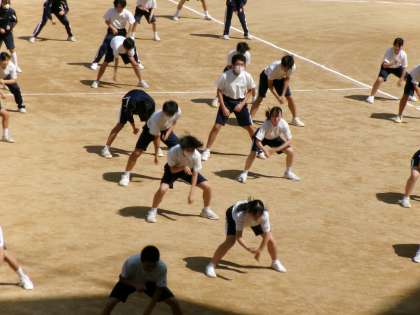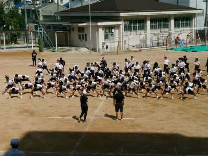 今日は、全クラスがそろってソーラン節の動きの確認や特にポジションの確認を行いました。