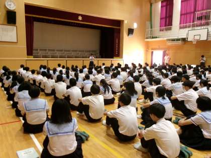 ある小学生が関西万博について、「地球の中の地球だった」と言っていたことに深く感銘したという内容でした。また、次はみんなが文化発表会、合唱コンクールや体育大会を通じて人に感動を与えられるように頑張ろうとのお話がありました。