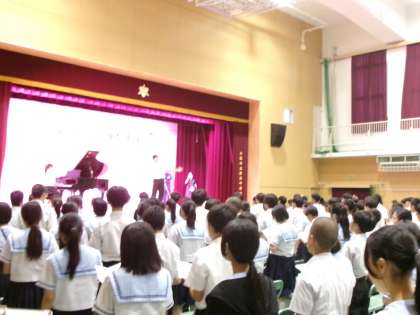 校長先生の講評のあと、全員で3年生の課題曲「手紙〜拝啓十五の君へ〜」を合唱しました。