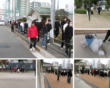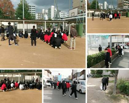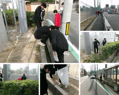 テスト後に、NCDを実施しました。2年生の有志と部活動の生徒がたくさん集まってくれました。今回は2グループに分かれて、吉野グランドを目指しながら清掃を行いました。最後に