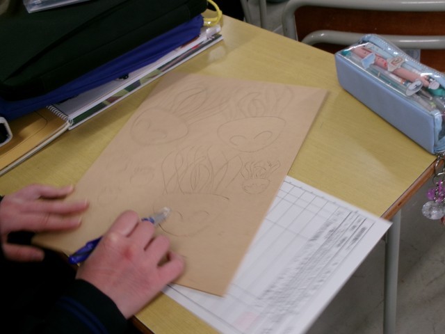 1年生の美術の授業では、木版画を行っていました。