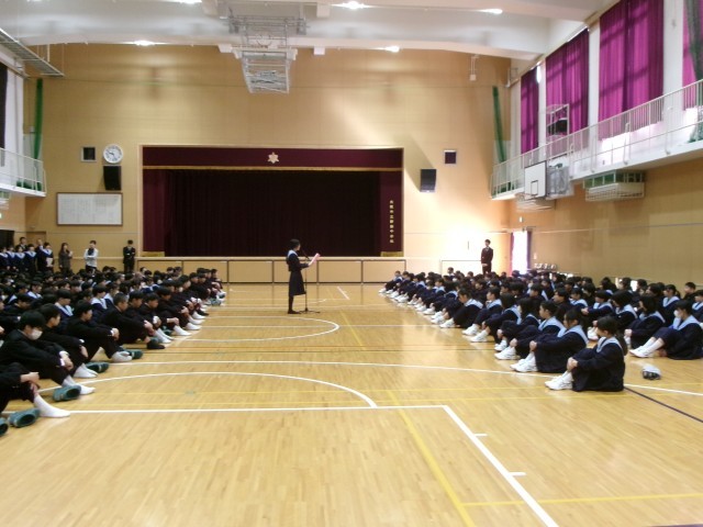 本日、新クラスの発表後に体育館で始業式・着任式・対面式がおこなわれました。卒業式以来、少しさびしさを感じていましたが新入生を迎え、新しい雰囲気の中でスタートをきることができました。始業式・着任式・対面式は、緊張と期待が入り混じる中進んでいきました。
