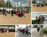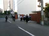 今日の登校の様子です。 生徒会役員が水まきもしてくれています。