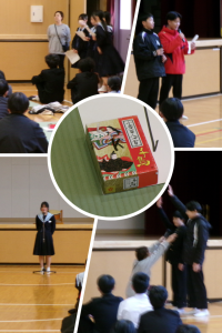 本日、5・6時間目に2年生は、百人一首大会を行っています。各クラスの班ごとに対戦...